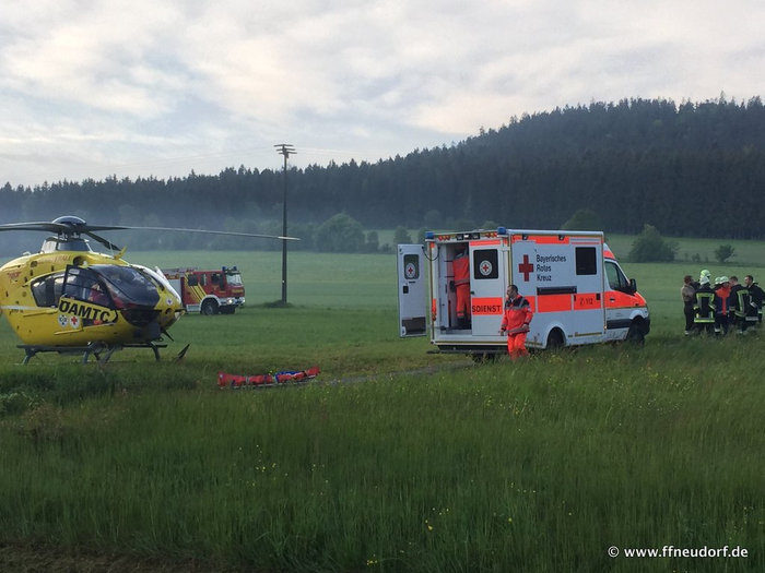 Pressebericht von der PNP-Online: "Nach Angaben der Polizei hat sich am Samstag, 30. Mai, gegen 5.30 Uhr auf einem Flurbereinigungsweg bei Elmberg ein schwerer Verkehrsunfall ereignet. Ein 19-Jähriger aus Grafenau kam mit seinem Auto aus bislang unbekannten Gründen nach links vom Weg ab. Der Wagen überschlug sich mehrmals seitlich und kam wieder auf den Rädern in einer Hecke zum Stehen. Der junge Mann, der nach ersten Erkenntnissen der Polizei nicht angegurtet war, wurde bei den Überschlägen aus dem Auto geschleudert und erlitt eine schwere Kopfverletzung. Er wurde mit dem Hubschrauber ins Klinikum Deggendorf eingeliefert. Am Wagen entstand Totalschaden in Höhe von ca. 10000 Euro." Bericht Grafenauer Anzeiger -pnp.de