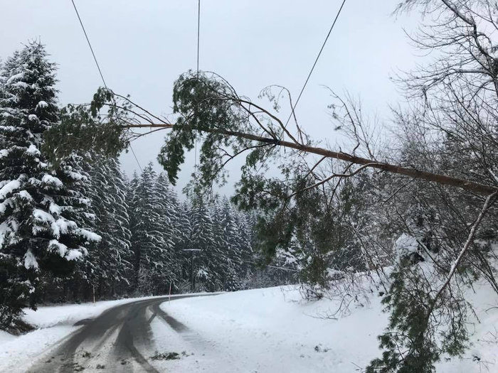 Bericht: Baum fiel auf Stromleitung und droht Feuer zu fangen