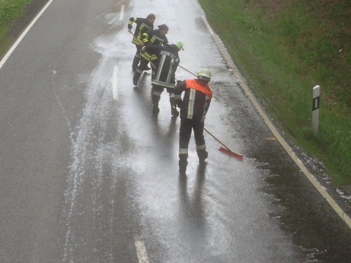 Bericht: Die Freiwillige Feuerwehr Neudorf rückte mit ihrem Einsatzfahrzeug Florian Neudorf 47/1 und 9 Mann Besatzung zum Einsatzort auf der B533 aus. Die Straße wurde in einem Waldstück zwischen den Ortschaften Kapfham und Saldenau über eine Länge von ca. 1,5 km einspurig von Rindergülle befreit. Um die Reinigung zu ermöglichen, musste unser LF 10/6 insgesamt dreimal zum Auffüllen des eingebauten 1000L Wassertanks zur Ortschaft Saldenau fahren. Dass die Zusammenarbeit zwischen den Feuerwehren gut funktionierte und zugleich strukturiert verlief zeigte sich darin, dass die Feuerwehren Hohenau und Saldenau die Reinigung aus Richtung Saldenau vornahmen. Unsere Feuerwehr Neudorf hingegen arbeitete sich von Kapfhamer Seite vorwärts, weshalb die Fahrbahn schon nach 2 Stunden wieder vollständig für den Verkehr freigegeben werden konnte.