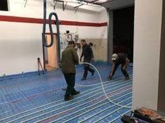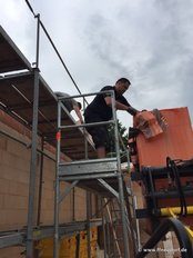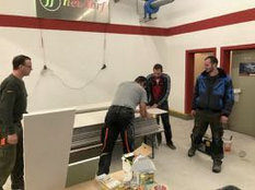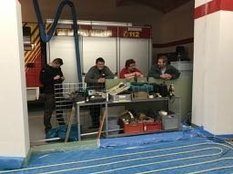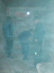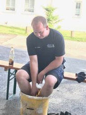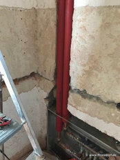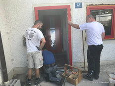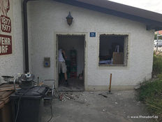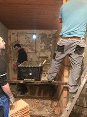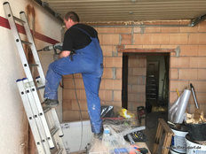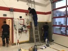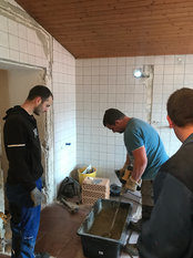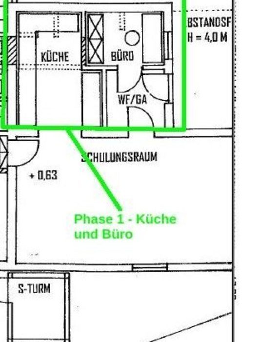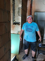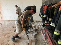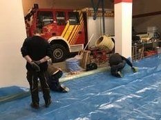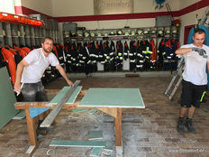 Im Neubau sei die Entwässerungsrinne, wie es sich gehört, an der tiefsten Stelle angebracht. Allerdings liege sie nicht in der Mitte der Fahrzeughalle, das müsse wohl an der Tagesform der damit betrauten Maurer gelegen haben. Im Altbau war der Gully am höchsten Punkt des Bodens. Wollte man das Wasser zum Ablaufen bringen, sah das aus wie beim Schruppen im Curling bei den Olympischen Winterspielen in Südkorea.