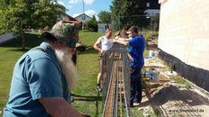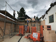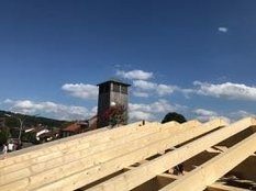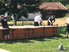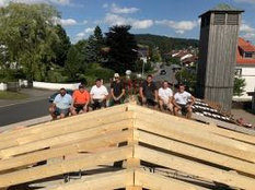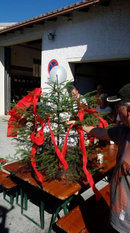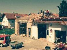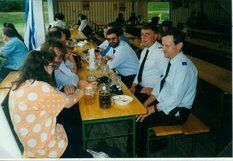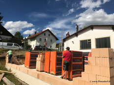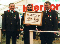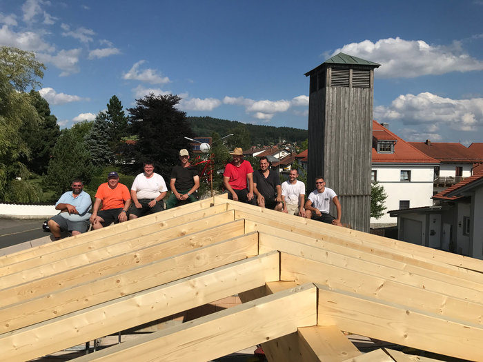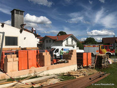 Beim Bau wurde auch an spätere Generationen gedacht. Eine Zeitkapsel mit der aktuellen Ausgabe des Grafenauer Anzeigers und die Namen der Helfer wurde mit eingemauert. Warum Stadtrat Helmut Binder aber auch noch ein Flasche Bucher Bier und eine Hartwurst hineingab, das wollte dem Fastenprediger nicht einleuchten. Wie es der gute Brauch ist, so nahmen sich Dorfbewohner vor, den Firstbaum zu stehlen. Als die Diebe nächtens anrückten und den massiven Balken erblickten, schwenkten sie um und gaben sich mit einer kleinen Dachstuhl- Rofen zufrieden. Auch eine brenzlige Situation beim Bau verriet Bruder Simeon den Zuhörern. Als die Estrichleger mit ihrer Arbeit fertig waren, fiel den Bauhelfern und dem Kommandanten Josef Scheichenzuber auf, dass alle Schlüssel am Schlüsselbrett hingen – für 24 Stunden unerreichbar bei einem Einsatz. Da blieb nur zu hoffen, dass nicht gerade da die Feuerwehr Neudorf zu einem Notfall gerufen würde.