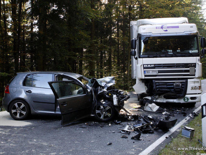 Bericht: Der Fahrer des Golfs geriet am Freitagnachmittag in Fahrtrichtung Kapfham auf die linke Fahrbahnseite. Ein tschechischer Lastwagen, der entgegen kam, konnte nicht mehr rechtzeitig ausweichen. Bei dem Zusammenprall wurde der Pkw des 41-Jährigen komplett demoliert. Der Pkw-Fahrer war sofort tot, der Lkw-Fahrer blieb unverletzt.